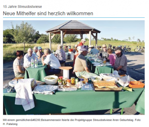 Bei herrlichem Sonnenschein konnte die Projektgruppe Obstwiese ihr 15-jähriges Jubiläum am Rand der Streuobstwiese im Landschaftspark Hachinger Tal feiern. Auf Initiative von Werner Reindl wurde die Projektgruppe bei der Agenda-Vollversammlung im Oktober 2002 gegründet.