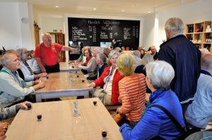 Wir genossen im Hofcafe eine ausführliche Saftverkostung – Aronia und Apfel. Auch der Essig aus Äpfeln wurde probiert, dabei hat es manchem von uns schon den Mund verzogen. Im Salat wird er aber sehr gut schmecken – Balsamessig eben.