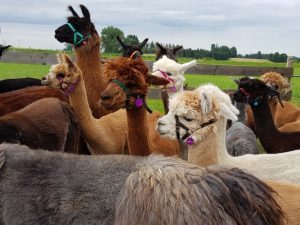 Gegen 10:30 Uhr, bei wunderbarem Wetter, nicht zu heiß und kein Regen, trafen wir mit dem Bus in Wurmsham auf dem Apfel-Aronia-Alpaka Paradies Winklhof ein. Von weitem sahen wir schon die besagten Tiere im Gatter stehen. Alpakas und Lamas. Zur Unterscheidung wurde gesagt, dass Lamas um einiges größer wären und sie hätten Hufeisenohren. Eine andere Gruppe wartete darauf, mit den Tieren eine Wanderung zu machen. Die Bilder sprechen für sich. Keines der Tiere hat gespuckt, obwohl es beide können und – „wenn man sie grimmig anschaut“ – auch manchmal tun.