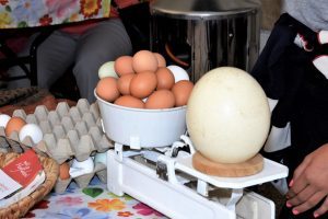 Wie viele Hühnereier in ein Straußenei passen, wurde von der Tochter des Hofes auch demonstriert, die Lösung aber hier nicht verraten.